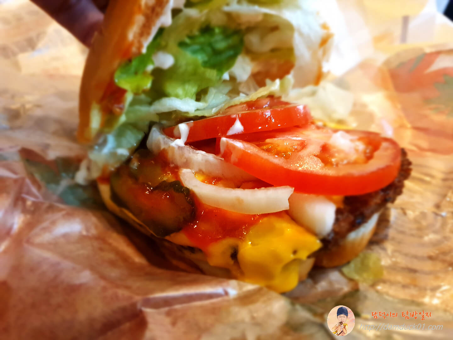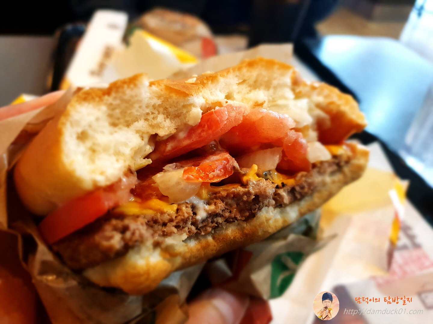 패티와 치즈, 피클, 양파, 토마토는 두 개나 들어 있네요.