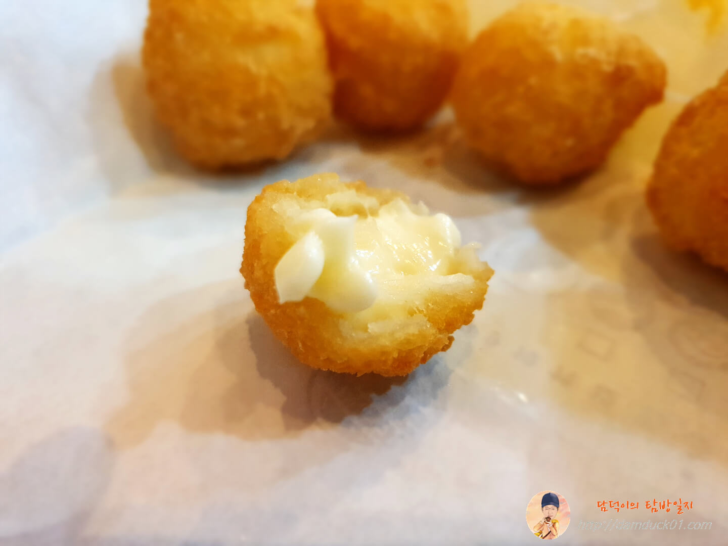 종이 포장지를 펼치고 접한 크리미모짜볼의 첫인상은 진짜 별로였거든요.