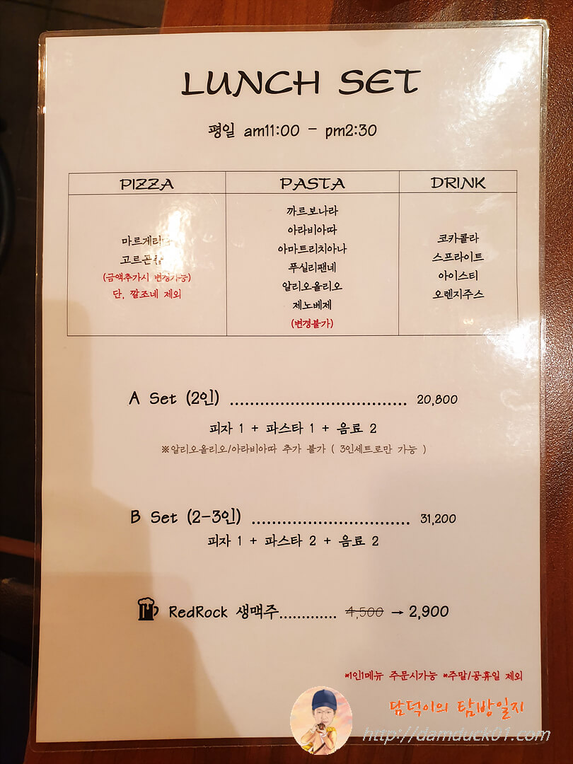 라마노 피자에는 런치세트가 있긴 한데 이게 단품으로 주문할 때 보다 저렴하지는 않더라고요.