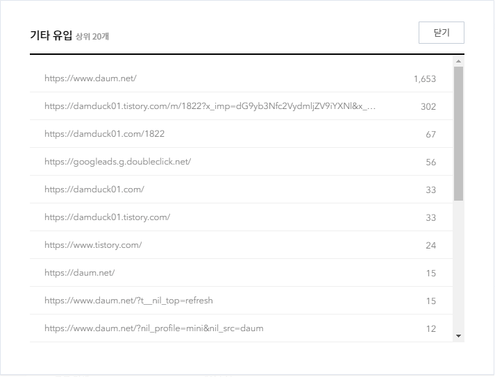 - 대박: 다음 직접 유입이 5,000 이상의 방문자 수