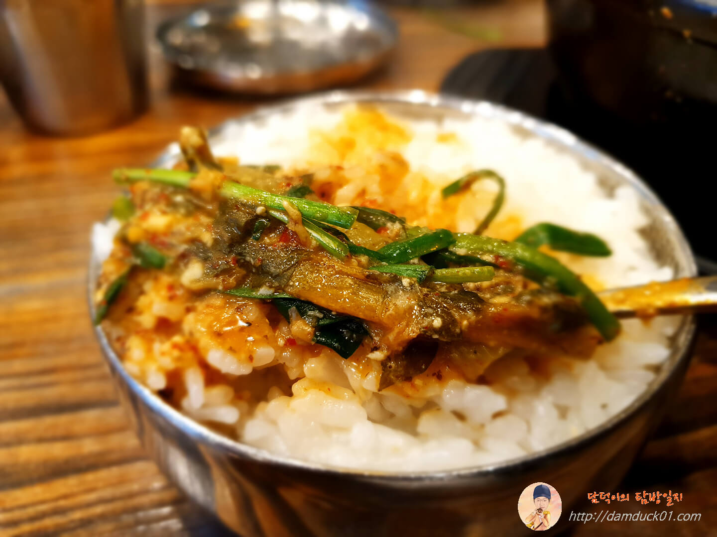 그 사이 다른 탐방원은 추어탕에 넣어 먹을 부추랑 들깨가루를 따로 요청해서 더 받았는데 저는 이 얼큰함에 다른 맛이 섞일 필요는 없을 거 같아서 부추만 더 넣어주었어요.