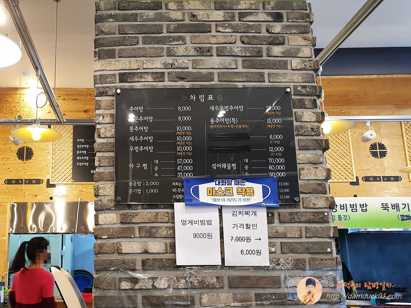 메뉴는 생각보다 다양했는데 저기 보이는 차림표 외에도 새로운 메뉴 3가지는 별도의 현수막에 적혀 있더라고요.