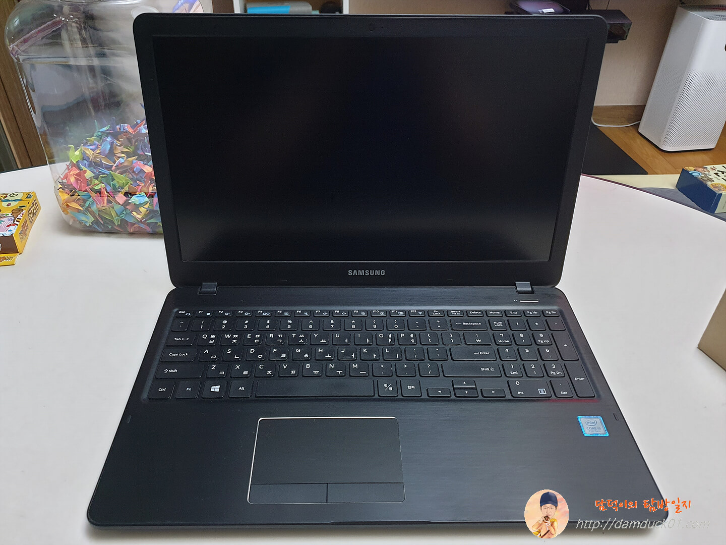 이렇게 메모리 확장하고 윈도우 설치해서 그동안 10년 넘은 노트북을 사용하던 작은 아들 학습용으로 세팅해 주었습니다. 캠 커버 스티커도 붙여 주었는데 다행히 좋아하네요.
