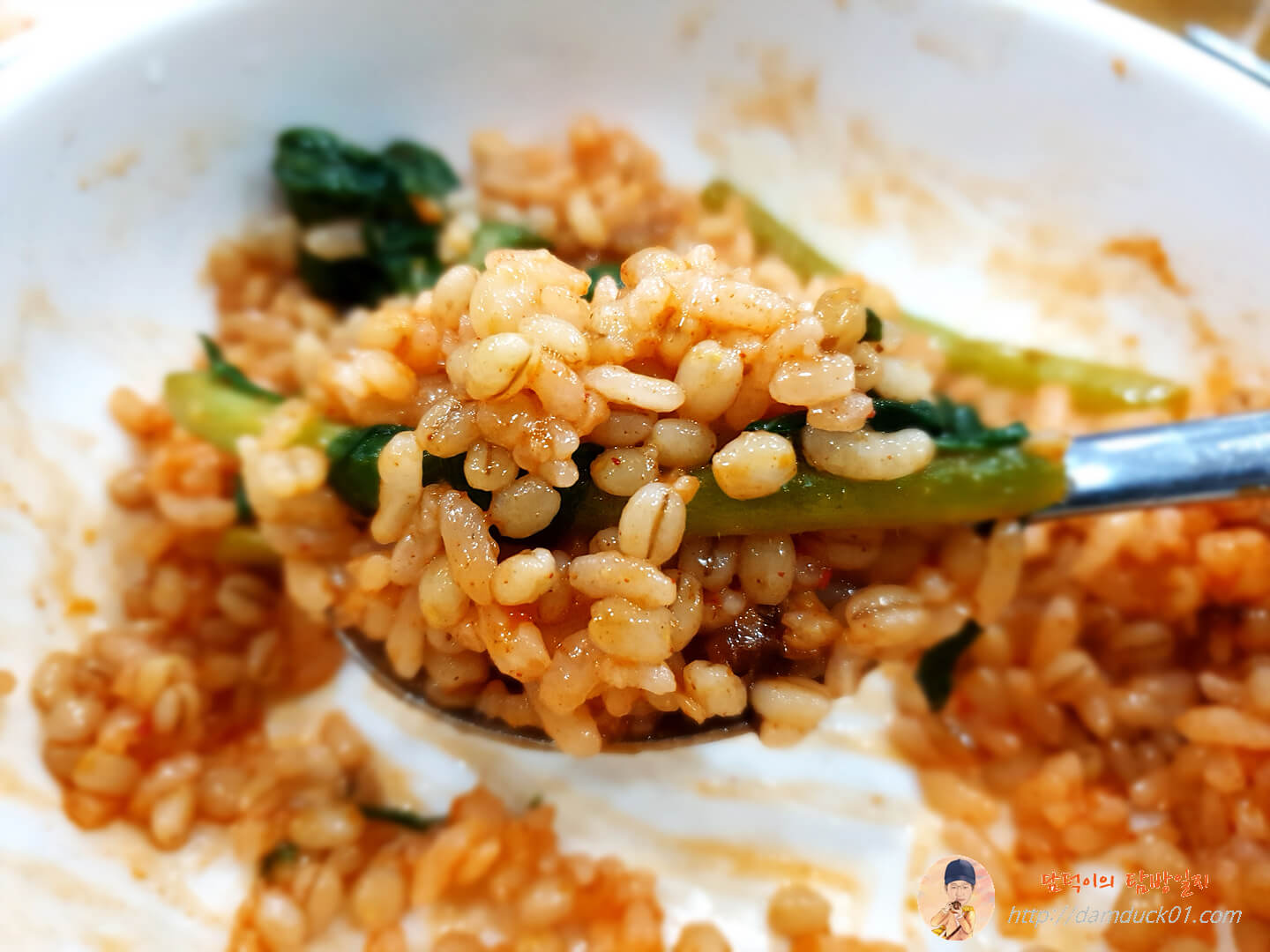 그럼 이렇게 반찬으로 나온 열무김치와 배추김치 중 열무를 밥그릇에 덜어서 열무 보리 비빔밥을 만들어 먹을 수 있죠.