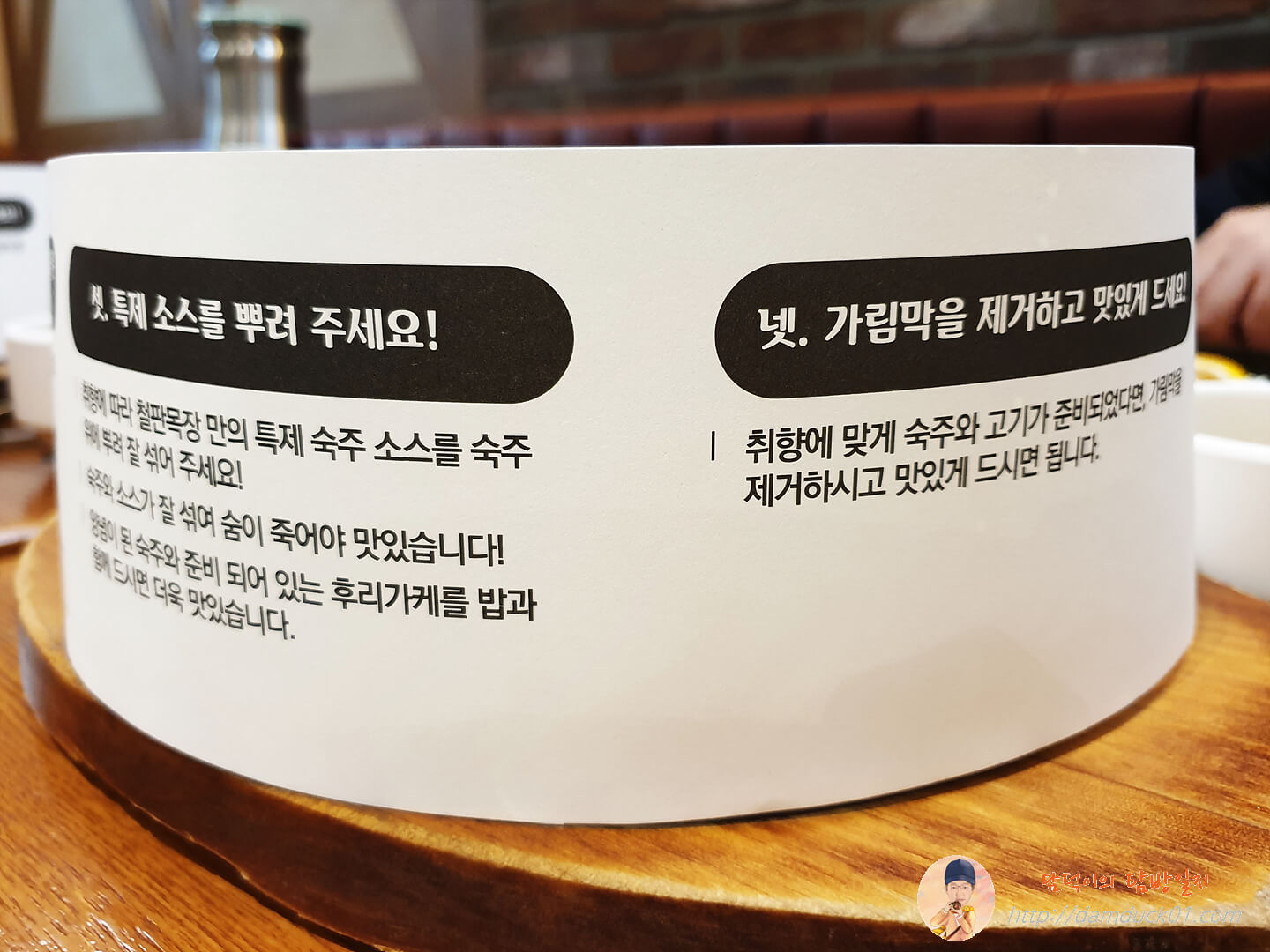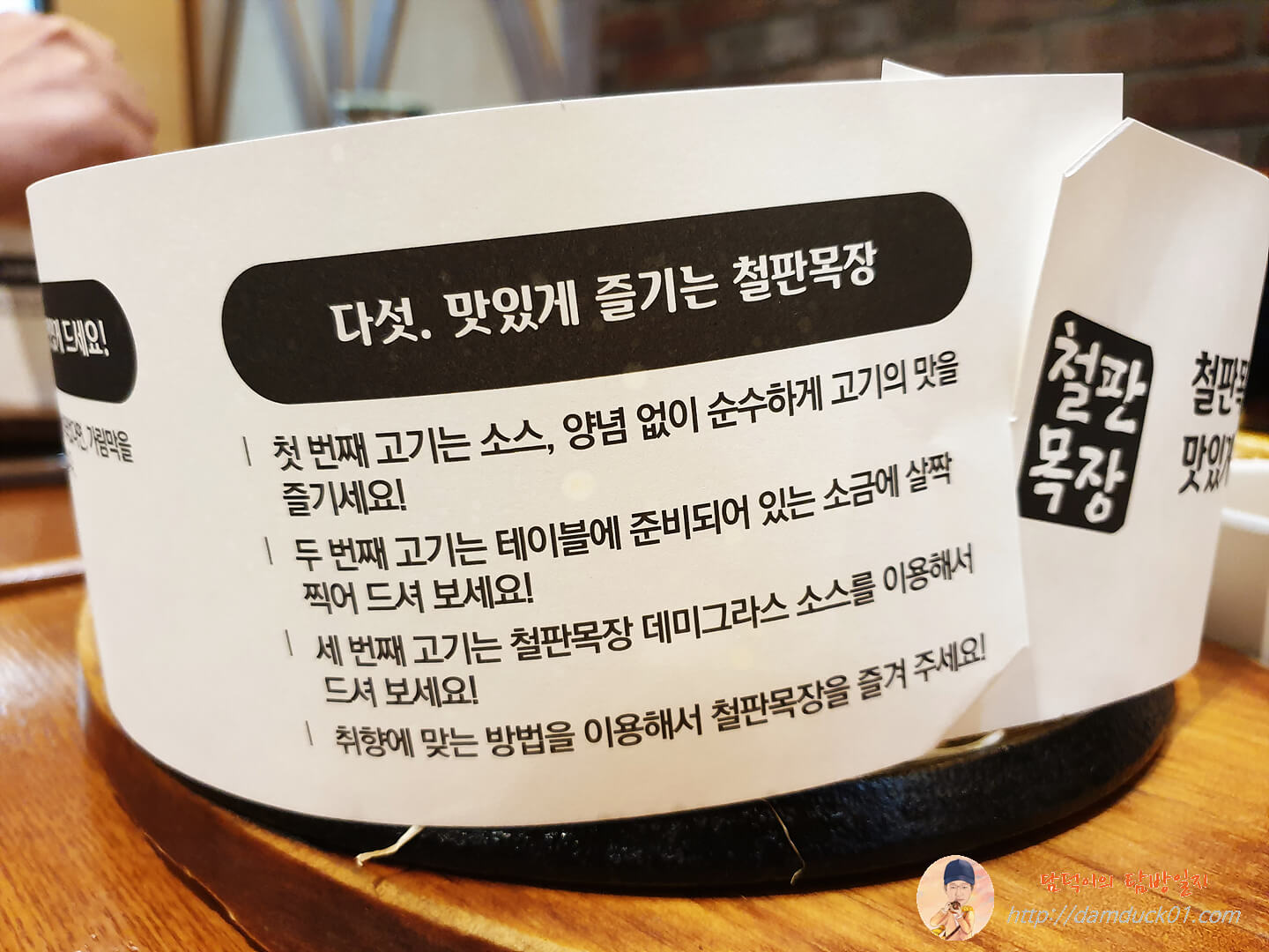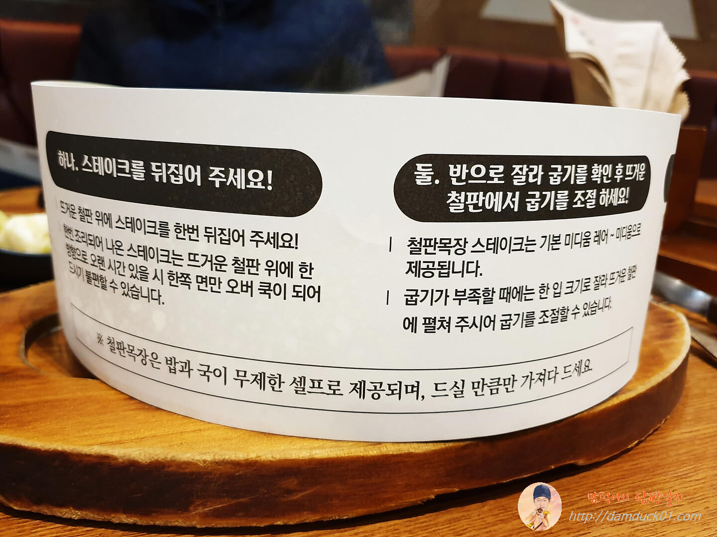 스테이크를 감싸고 있는 종이에는 철판 목장의 스테이크를 맛있게 먹는 법이 있는데요.