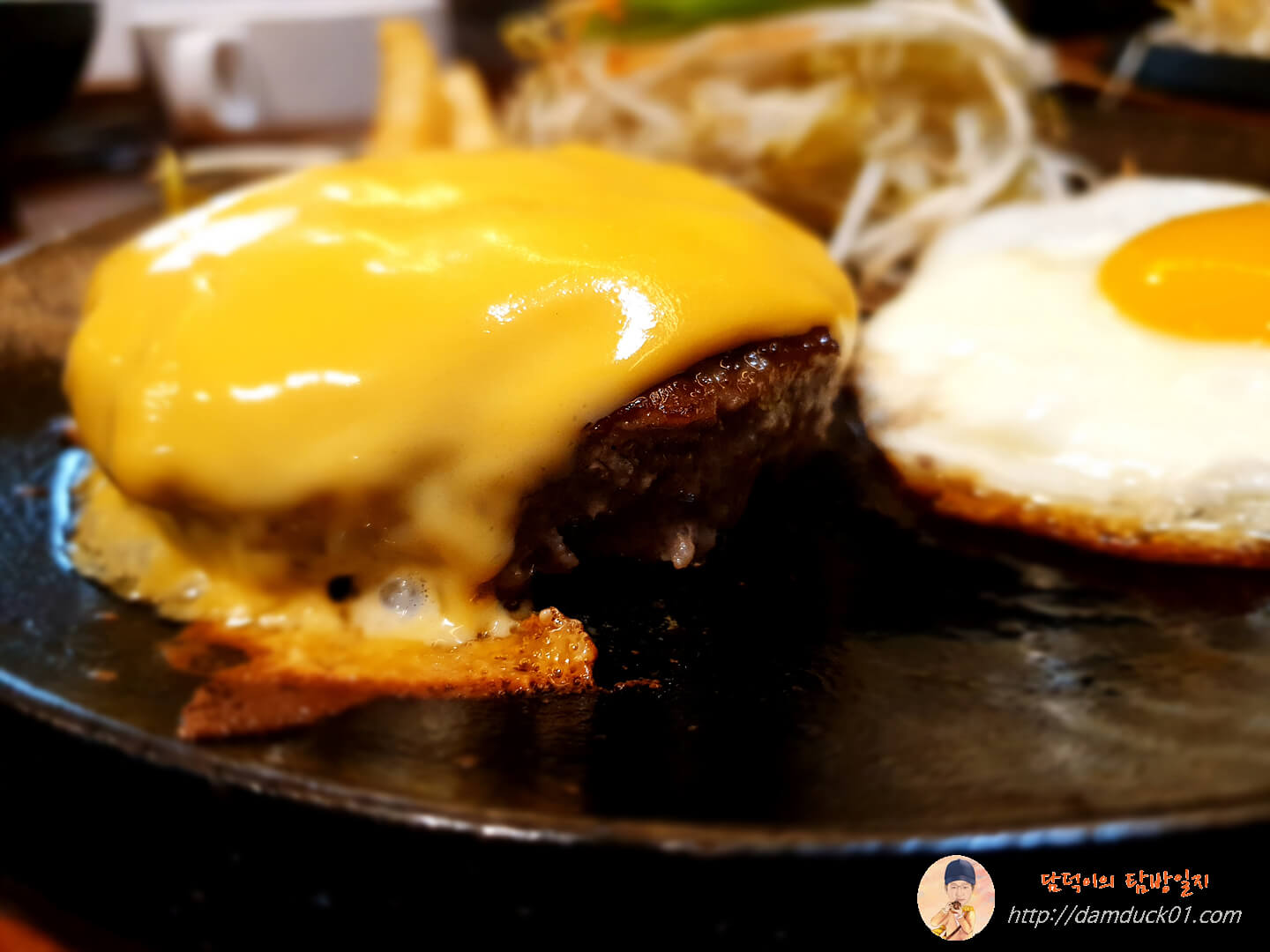 직장인 점심 메뉴 탐방 - 자글자글 끓는 철판 위에 함박 스테이크 그 위에 치즈가! 철판목장의 레어·치즈 세트
