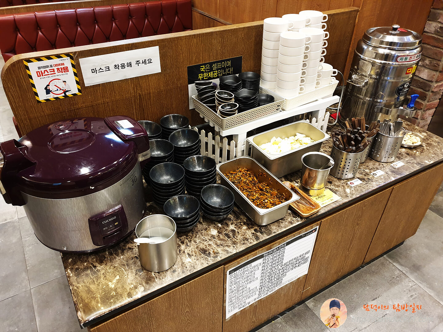칼과 포크, 수저도 여기서 직접 가져가야 합니다.