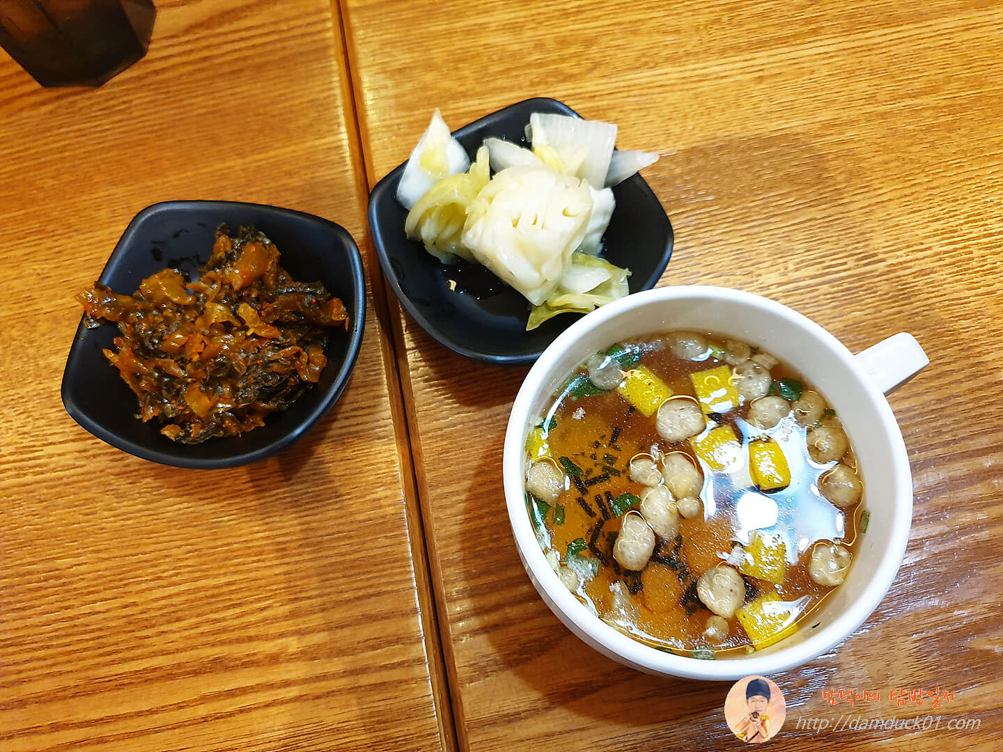 셀프바에서 가져온 것은 열무 볶음. 양배추 피클이랑 국.