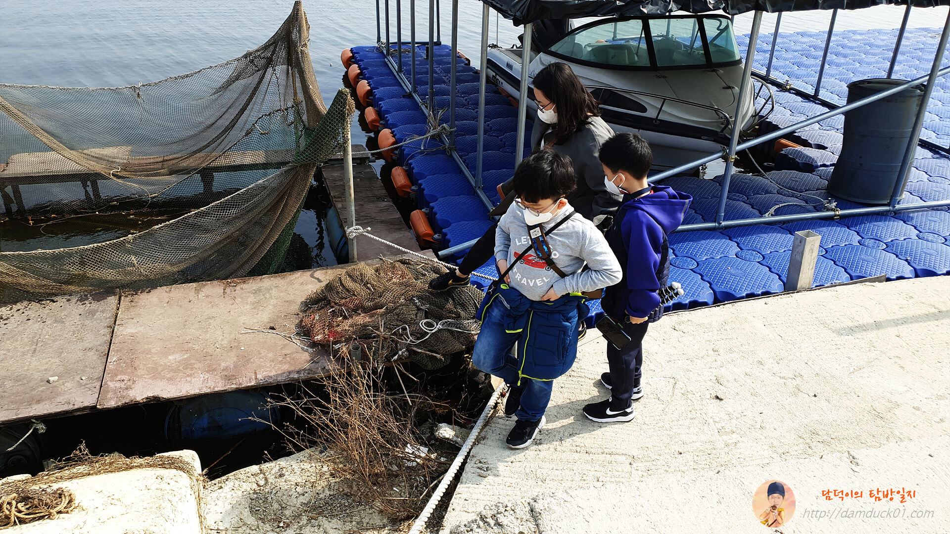 기다리는 동안 주변을 잠깐 돌아다녀봤는데 이곳에 물고기가 제법 있나 봅니다. 작은 어선들이 정박해 있고 잡아온 물고기를 가둬 놓은 곳에는 큰 크기의 물고기들이 움직이는 걸 볼 수 있었어요. 동물 좋아하는 아이들은 꽤 집중해서 구경을 합니다. 그런데 이렇게 구경하고 온 사이 들어왔던 자전거는 다른 손님들이 이미 가져간 후였어요. 결국 자전거 대여소에서 자전거 올 때까지 기다리다가 들어온 자전거를 빌릴 수 있었습니다.