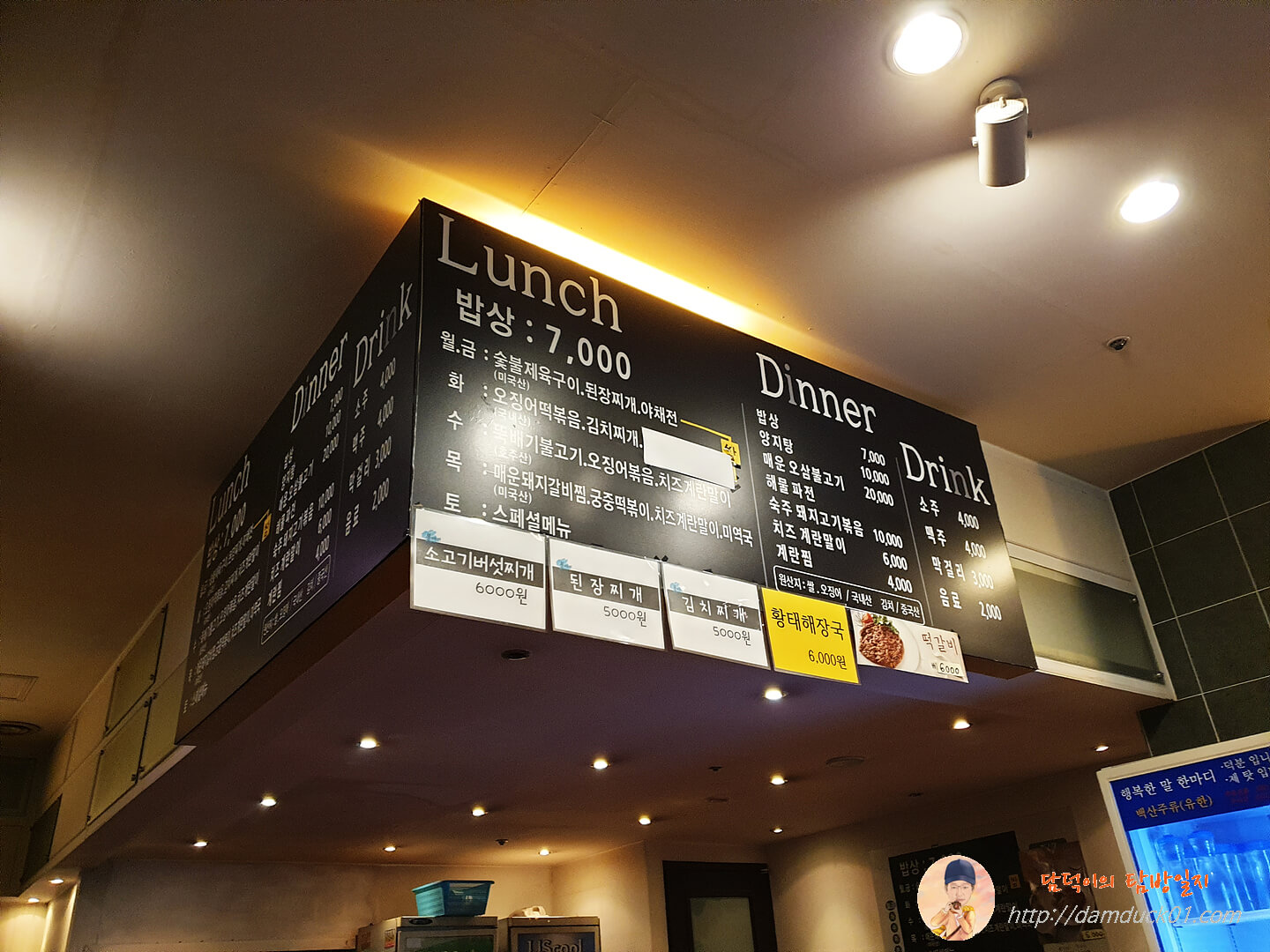 우렁쌈밥을 먹으면서 유리창으로 보이는 금요일 메뉴 구성이라던가 해장국, 소고기 버섯찌개, 된장찌개, 김치찌개의 가격이 너무 저렴해서 한 번 가보아야겠다는 생각을 했고 바로 금요일에 방문을 했답니다.