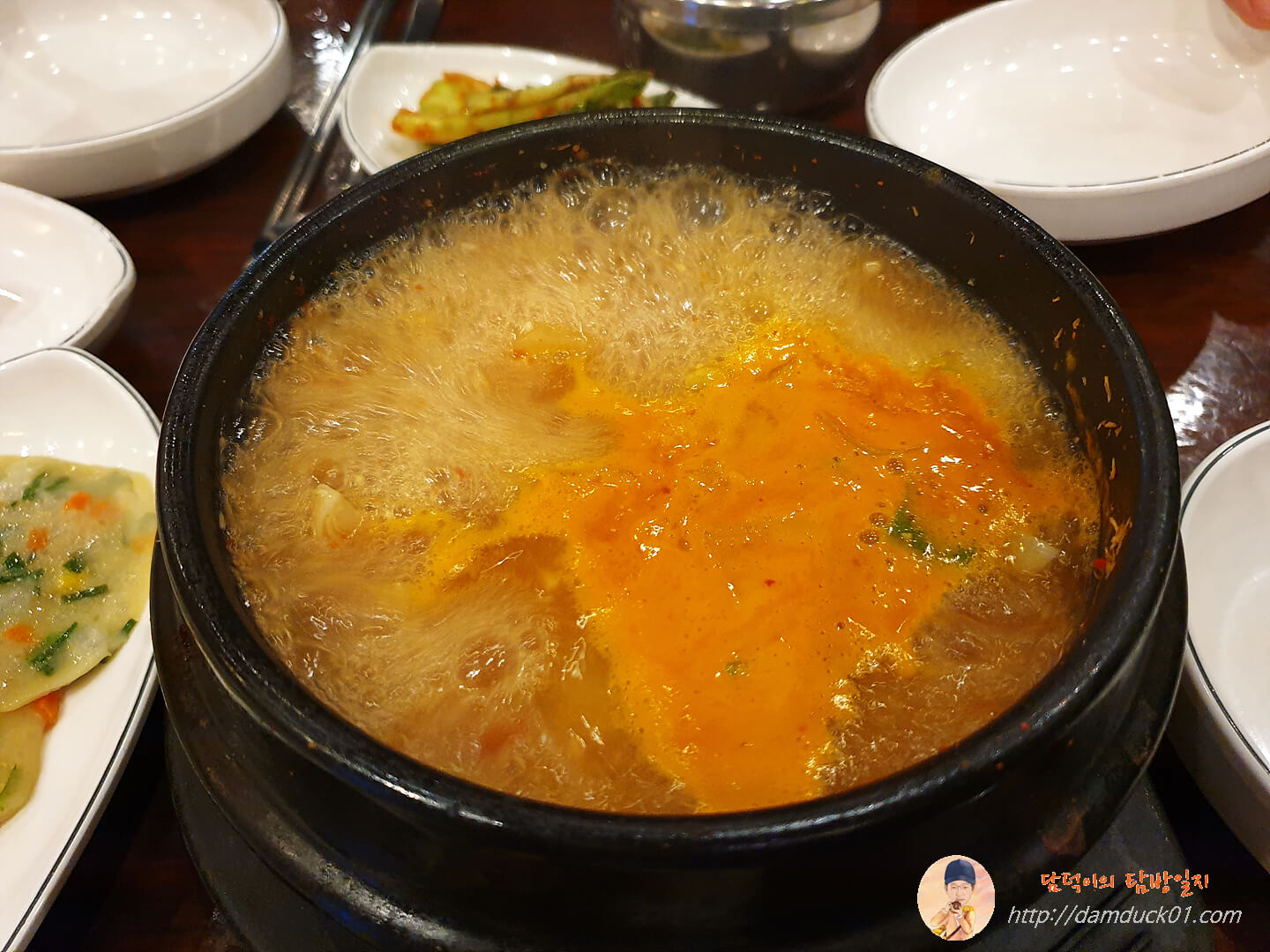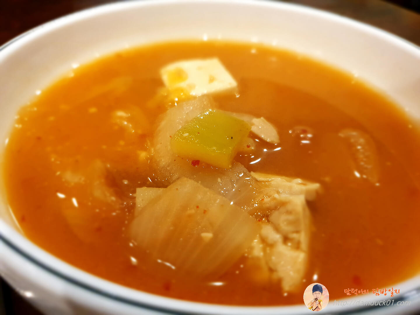 된장찌개는 이렇게 한 뚝배기에 나왔는데 음~ 1인분용 뚝배기는 아니었지만 그렇다고 3인분이라고 하기에는 양이 너무 적어 보였어요.
