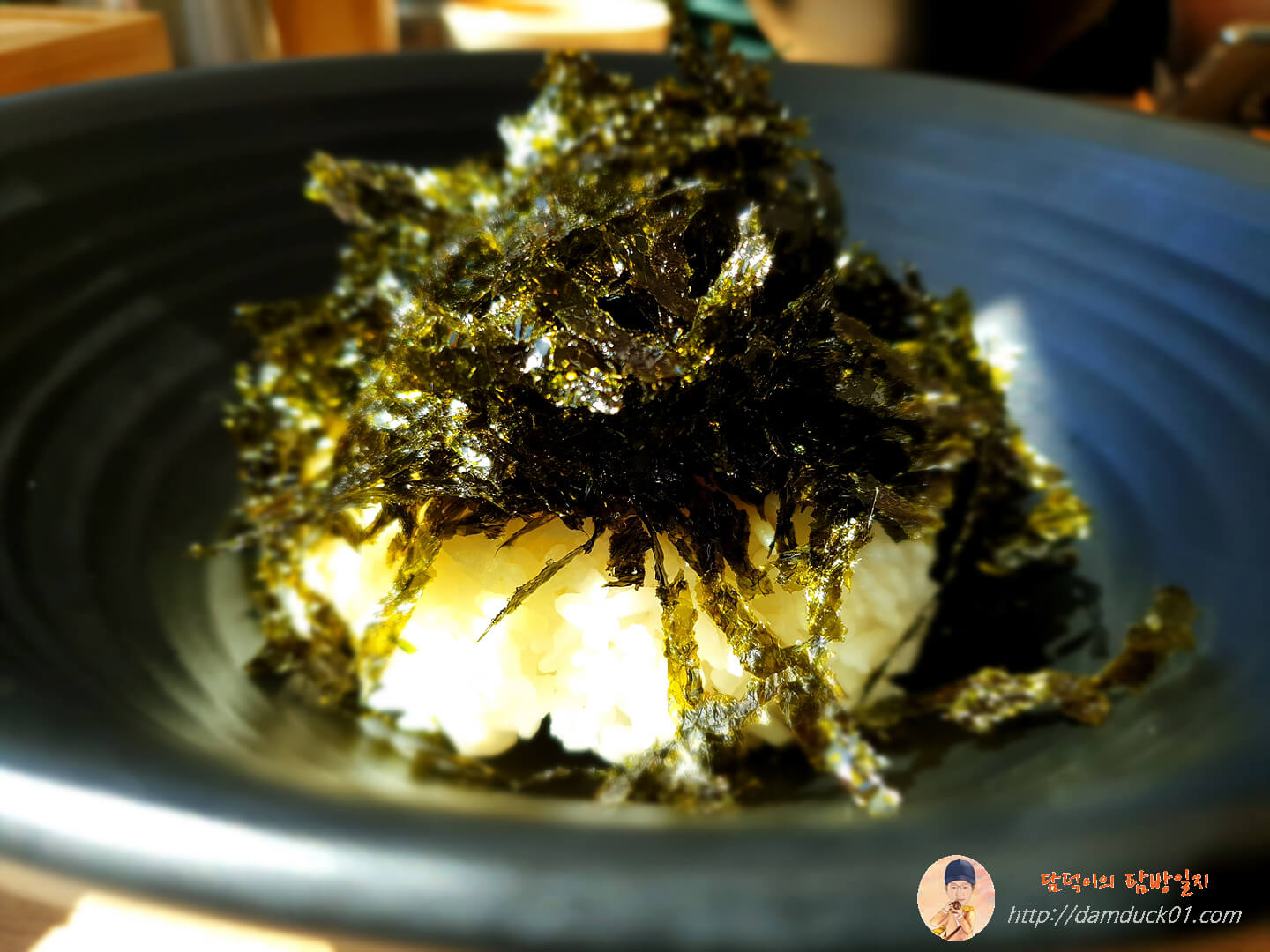 제공해 준 사발에 밥 한 공기를 그대로 넣어주고 김가루를 수북이 쌓아줬습니다.