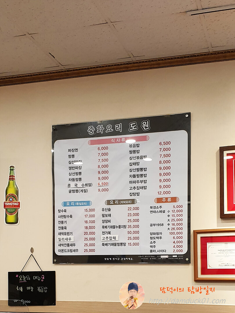 도원의 메뉴판을 살펴보면 오늘의 메뉴 이외에 일반적인 중국집과 비슷한 메뉴를 판매하고 있어요.
