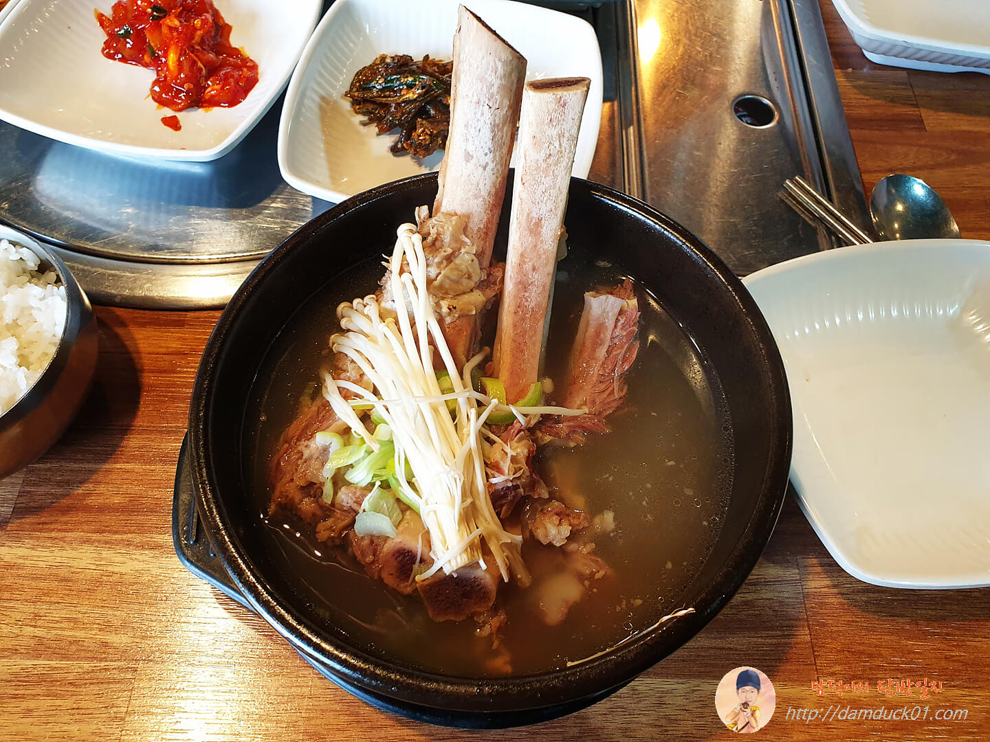 갈비탕이 나왔습니다. 거대한 갈빗대가 두 개인데 첫인상은 나쁘지 않네요.