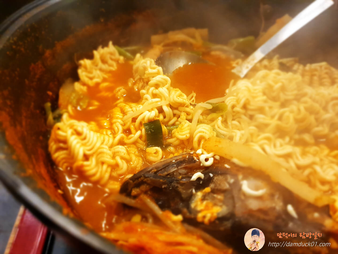 무료로 제공되는 라면 사리를 넣어주고 동태탕을 한 번 더 끓여줍니다.