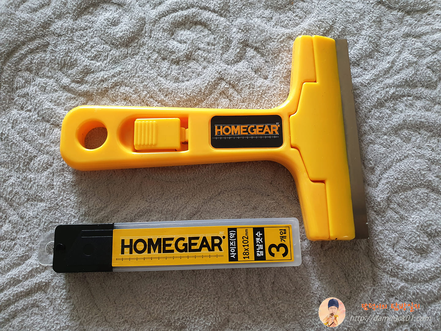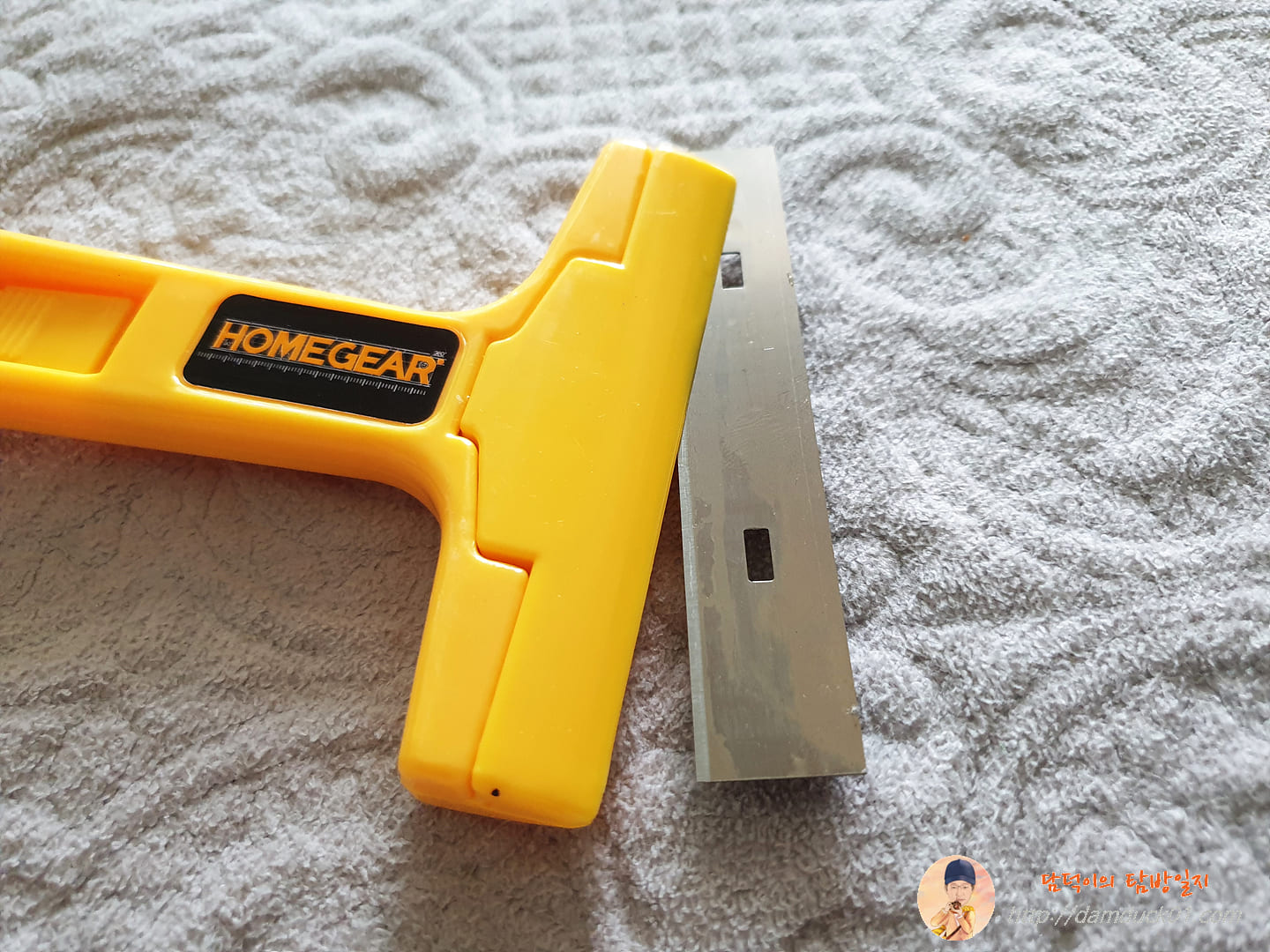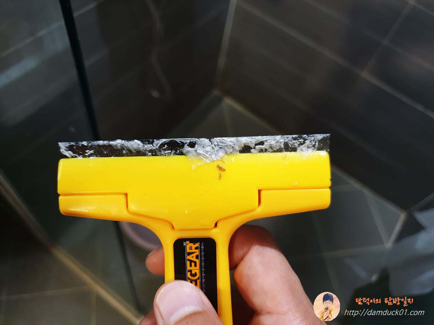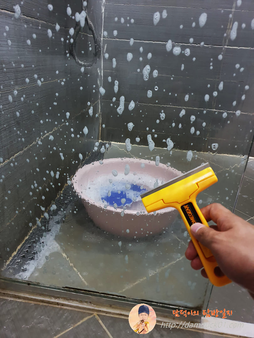 한 달 훌쩍 넘은 거 같아요. 유튜브에서 욕실에 있는 유리 청소법을 설명하는 영상을 보고 그 주에 산책하면서 다이소에 갔다가 물때 제거용으로 사 온 제품이 바로 홈 기어 날 교체형 스크래퍼입니다. 어린이날부터 오늘까지 이틀간 연차를 내고 집에 있으면서 스크래퍼 가지고 욕실 유리 청소 좀 해야겠다고 마음을 먹었죠.