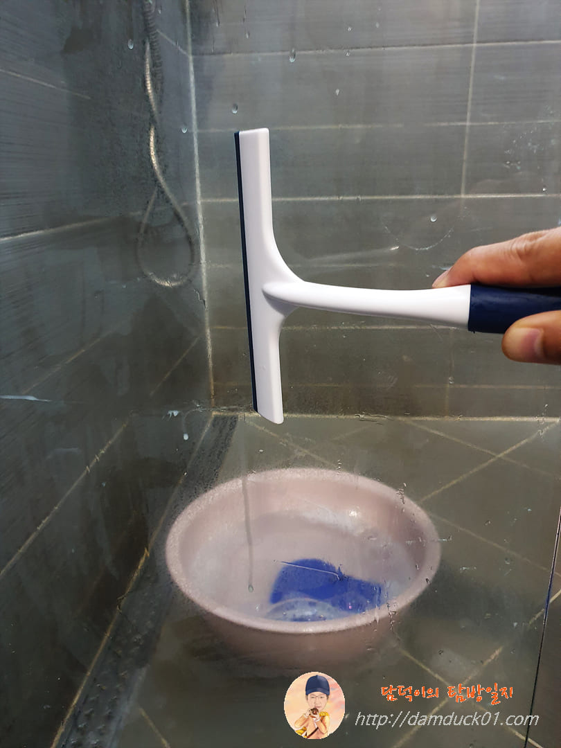 그렇게 헤라(스크래퍼) 질(?)을 하고 나서 이번에는 스퀴지 질을 합니다. 가로로 슥슥슥, 세로로 슥슥슥, 이렇게 물기를 제거하고 나니까