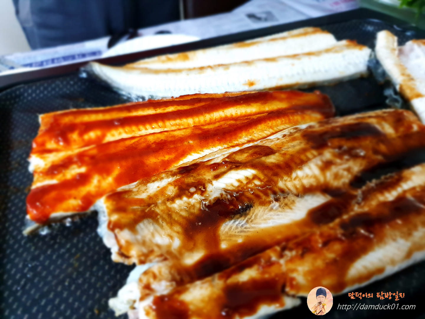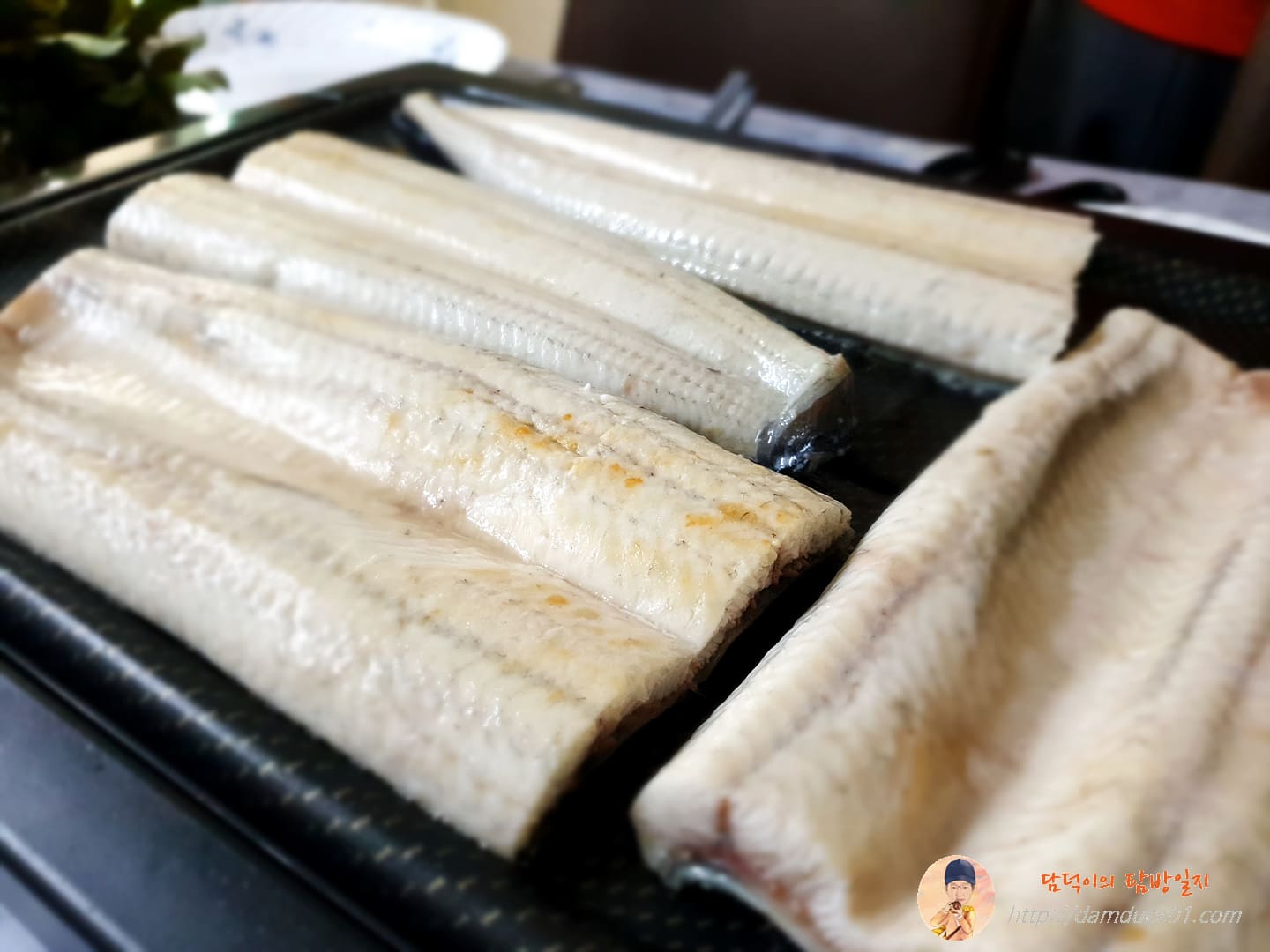 자주 사용하는 불판에는 장어가 가득 올라가 있네요.