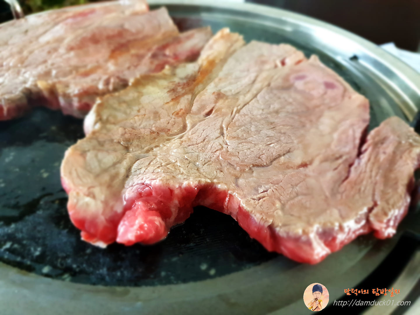 두 덩이를 올려놓으니까 불판이 가득 찼어요.