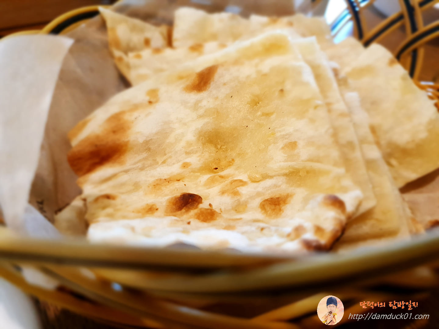 원래는 같은 난이 있어도 다 개별로 담아서 나왔는데 어제는 갈릭난 2개를 한 바구니에 담았네요.
