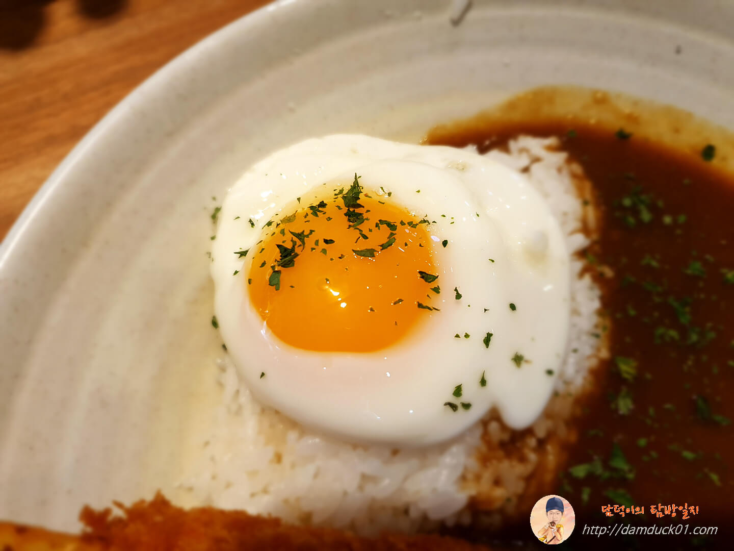 새우튀김 카레에 추가한 달걀 프라이 그리고 장국까지 주문한 음식이 다 나왔습니다.