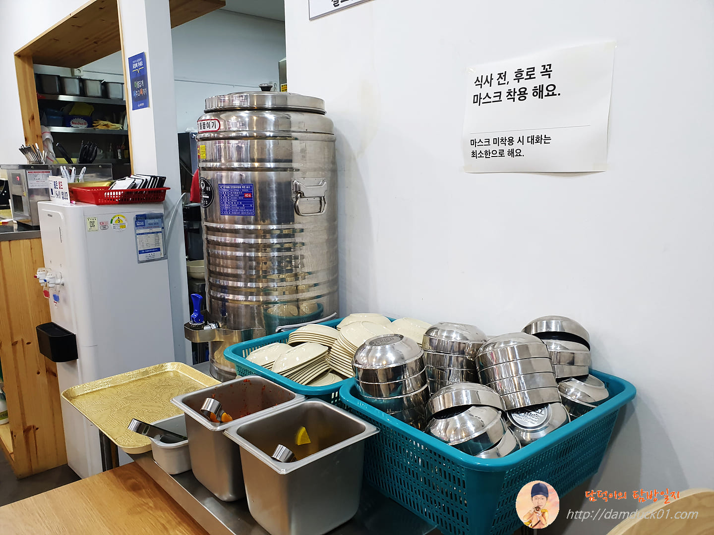 반찬은 생각도 안 하고 있었는데 직원 분이 단무지를 가져다주셔서 둘러봤더니 바로 옆에 이렇게 반찬을 가져다주는 곳이 마련되어 있어요.