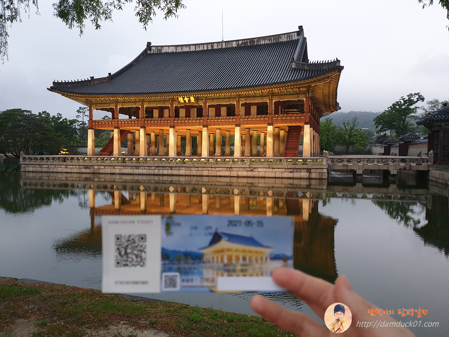 입장 티켓에도 바로 이 경회루가 인쇄되어 있어요. 조선 시대에 나라의 경사가 있을 때마다 연회를 베풀던 누각이라던데 데 지금 봐도 주변 경치가 너무 좋네요.