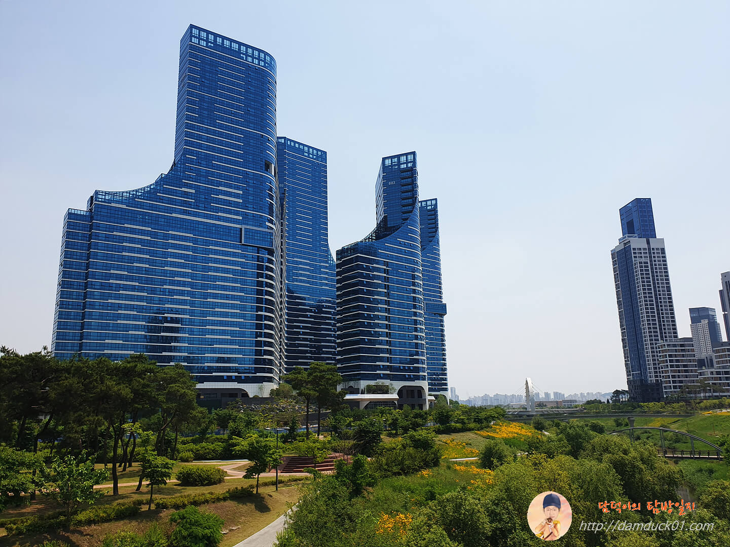 그리고 저 파란색 유리로 된 건물도 아파트라는 거 같은데 저렇게 특이하게 생긴 아파트는 처음인 거 같아요.