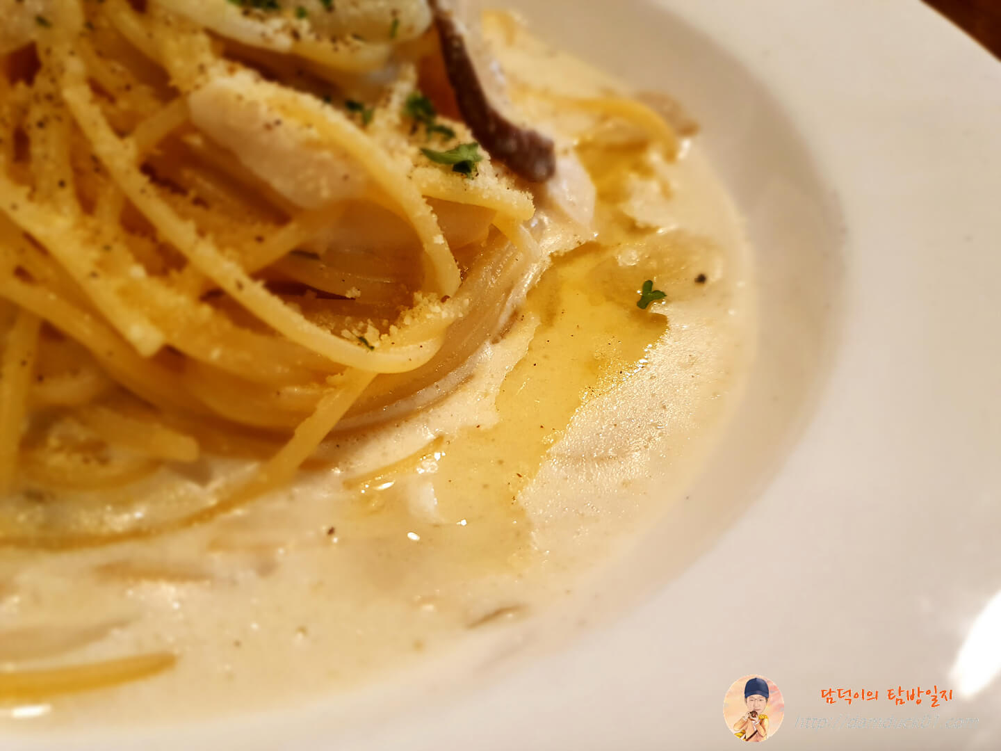 크림소스에 떠 있는 오일이 꽤 많이 보입니다.