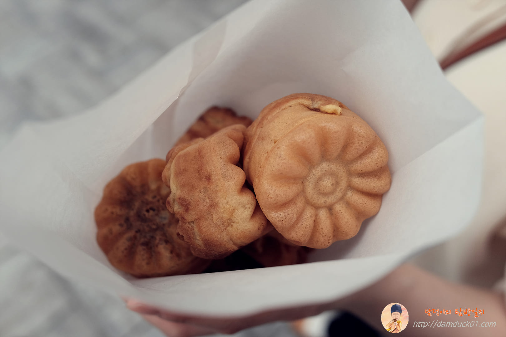 그럼 이렇게 맛있는 국화빵을 받을 수 있답니다. 2,000원에 8개의 국화빵을 들고 다시 걷기 시작합니다. 오랜만에 먹어서인지 원래 맛이 있는 건지 맛있었어요.
