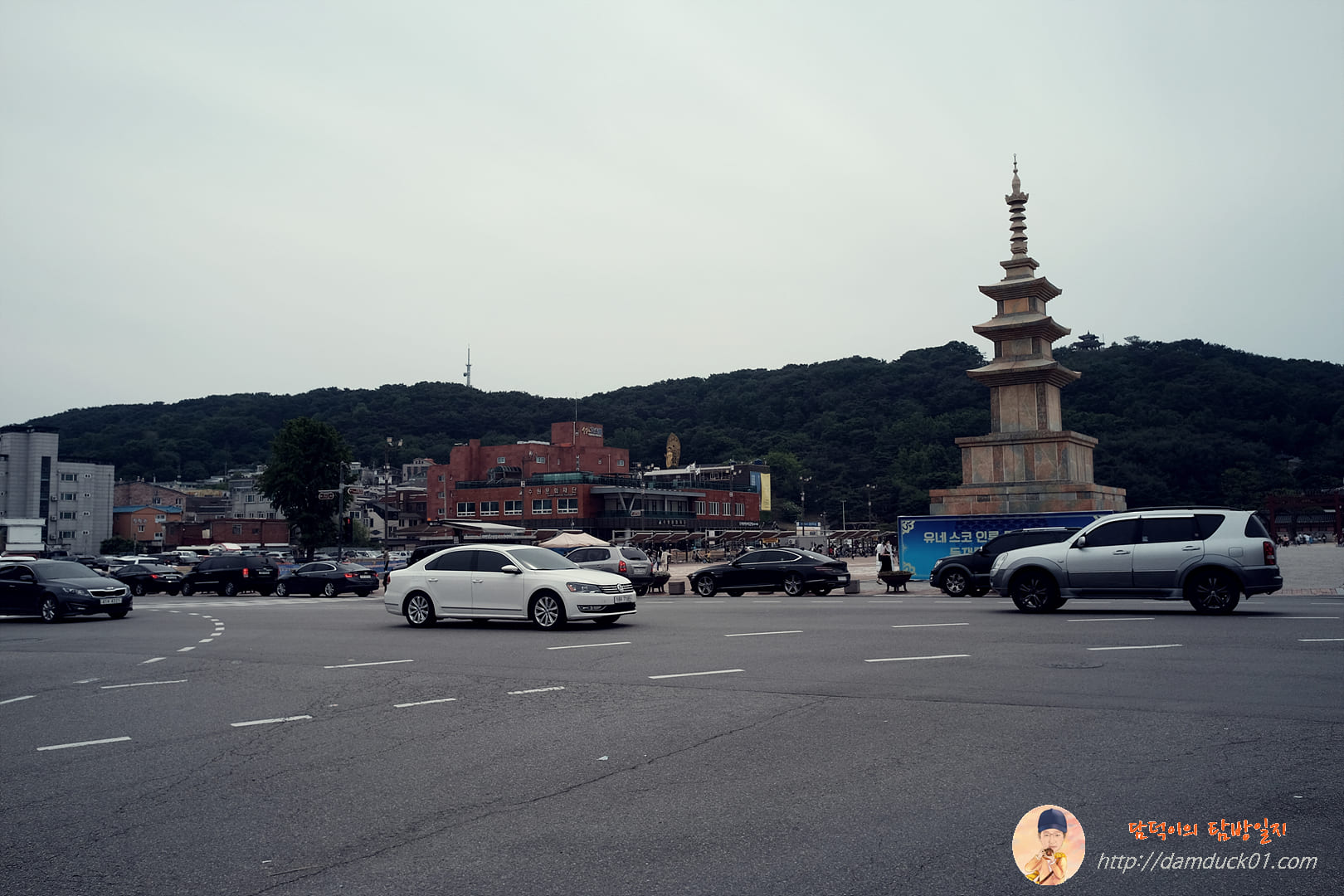 저기 보이시나요? 건너편에 왼쪽 방향으로 쭉 서 있는 차들, 저 차들이 전부 행궁 주차장 진입을 기다리는 차량들이랍니다. 행리단길을 찾아오는 사람들 진짜 많네요.