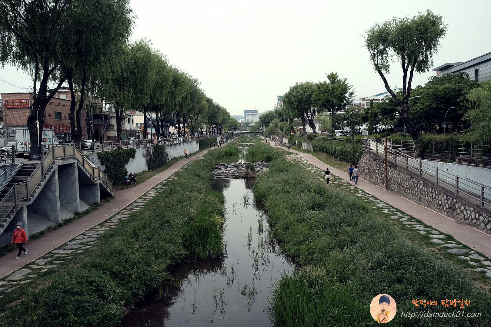 행궁광장 주차장이 있지만 주차를 기다리는 차량이 어마어마하더라고요. 그래서 저는 팔달구청에 주차를 하고 조금 걸었습니다. 팔달구청에서 화성행궁광장 쪽으로 가는 길에 보이는 수원천.