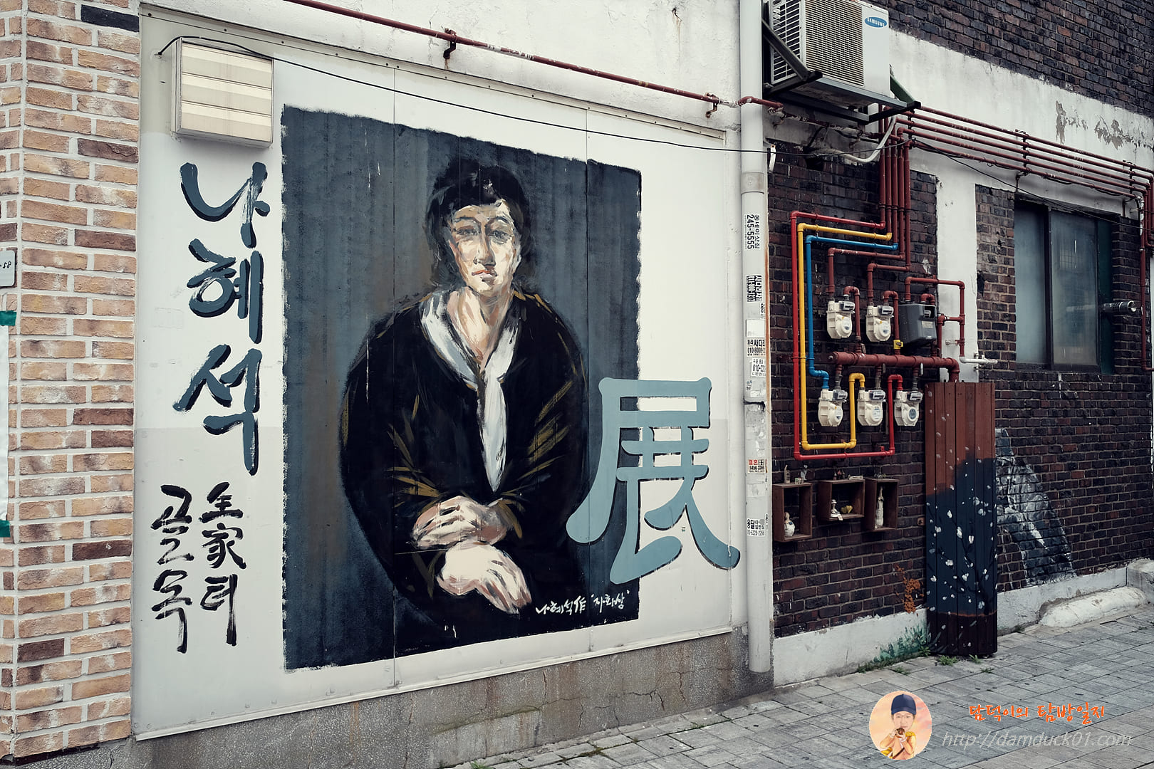 한국 최초의 여성 서양화가이자 작가, 시인, 조각가, 여성운동가, 사회운동가, 언론인인 나혜석 골목이 여기 있어요. 생가가 있는 건 아니고 말 그대로 터만 남아 있다고 하네요. 전에는 나혜석 생가터 골목전이라는 제목으로 벽화전도 했던 거 같은데 저는 위 사진 속 하나의 벽화만 볼 수 있었어요.