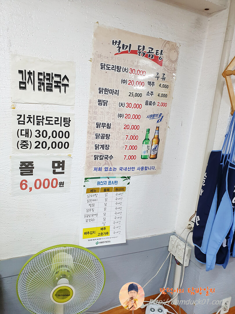 별미 닭곰탕찜닭 메뉴판