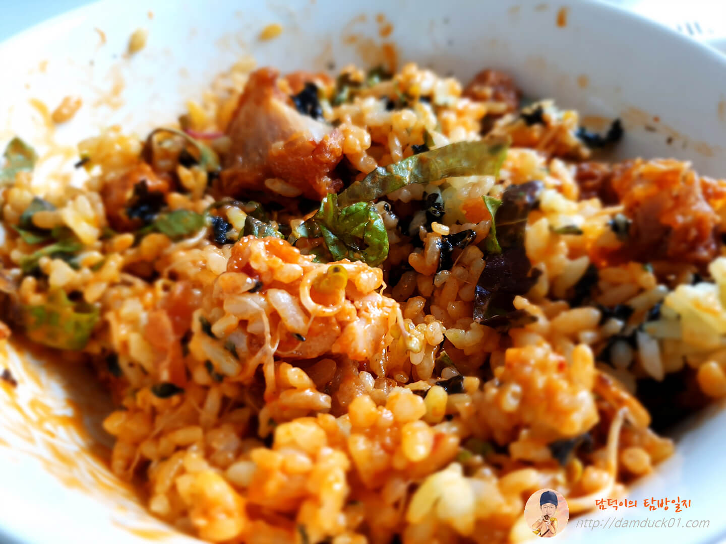 비비기 전에 또 뭐가 있나 살펴봤는데 오호! 밥도 그냥 흰밥이 아니고 강황 밥입니다. 밥이 살짝 노란색이죠.