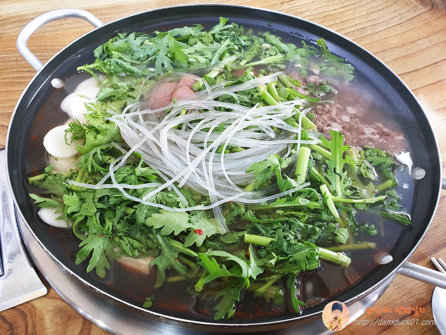 처음 보는 부대찌개 비주얼이네요. 미나리가 어마어마하게 들어 있습니다.