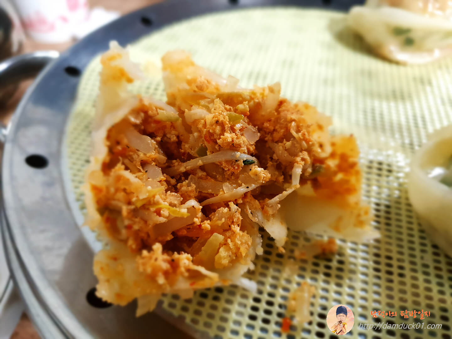 그리고 만두, 음~ 만두는 좀 퍽퍽해요. 막 찐 게 아니고 만들어 둔 지 조금 지난 걸까요? 만두피가 많이 퍽퍽하더라고요.