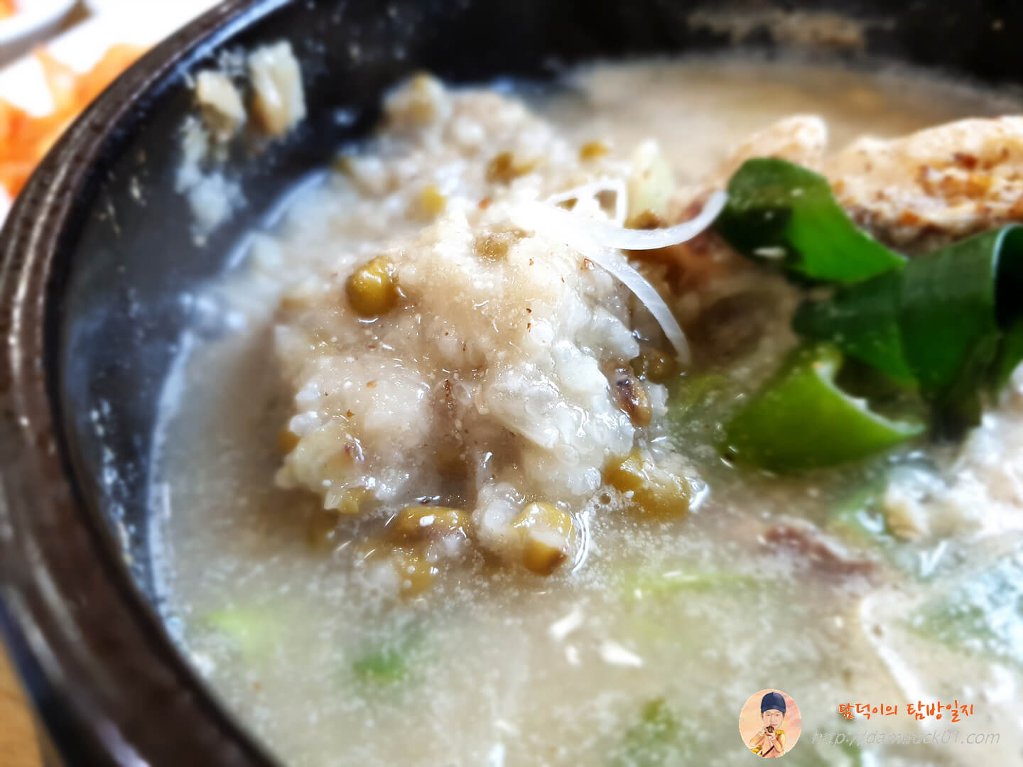 그런데 이렇게 뚝배기 안에 찹쌀밥이 녹두와 함께 들어 있더라고요.