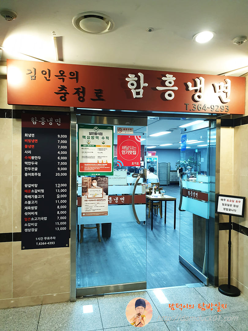 이번 주는 수요일까지 긴 시간은 아니지만 엄청 쏟아지는 소나기가 있었는데 어제는 오랜만에 소나기 없이 하루를 보냈네요. 하지만 소나기가 없어서인지 너무 덥더라고요. 햇볕이 따가울 정도랄까요. 그렇게 덥던 목요일 시원한 게 먹고 싶어서 점심을 먹으러 간 곳은 김인옥의 충정로 함흥냉면입니다.