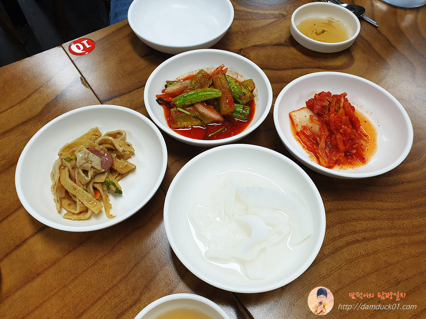 어제는 탐방원이 총 4명이었거든요. 그중 한 명이 뚝배기 불고기를 시켜서 반찬이 나온 거 같은데요. 반찬은 첫 방문때와 동일하네요. 그리고 냉면을 시켜서 냉면용 반찬(?)으로 무가 나왔고요. 그러니까 냉면만 주문할 때는 저 3 찬이 제공되지 않을 거 같아요.