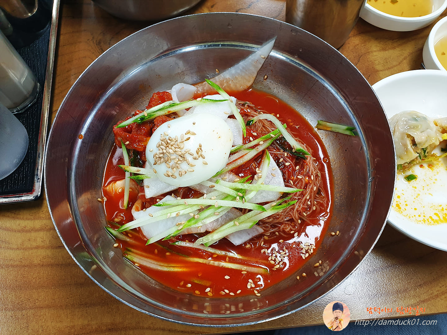 어제는 탐방원이 총 4명이었거든요. 그중 한 명이 뚝배기 불고기를 시켜서 반찬이 나온 거 같은데요. 반찬은 첫 방문때와 동일하네요. 그리고 냉면을 시켜서 냉면용 반찬(?)으로 무가 나왔고요. 그러니까 냉면만 주문할 때는 저 3 찬이 제공되지 않을 거 같아요.
