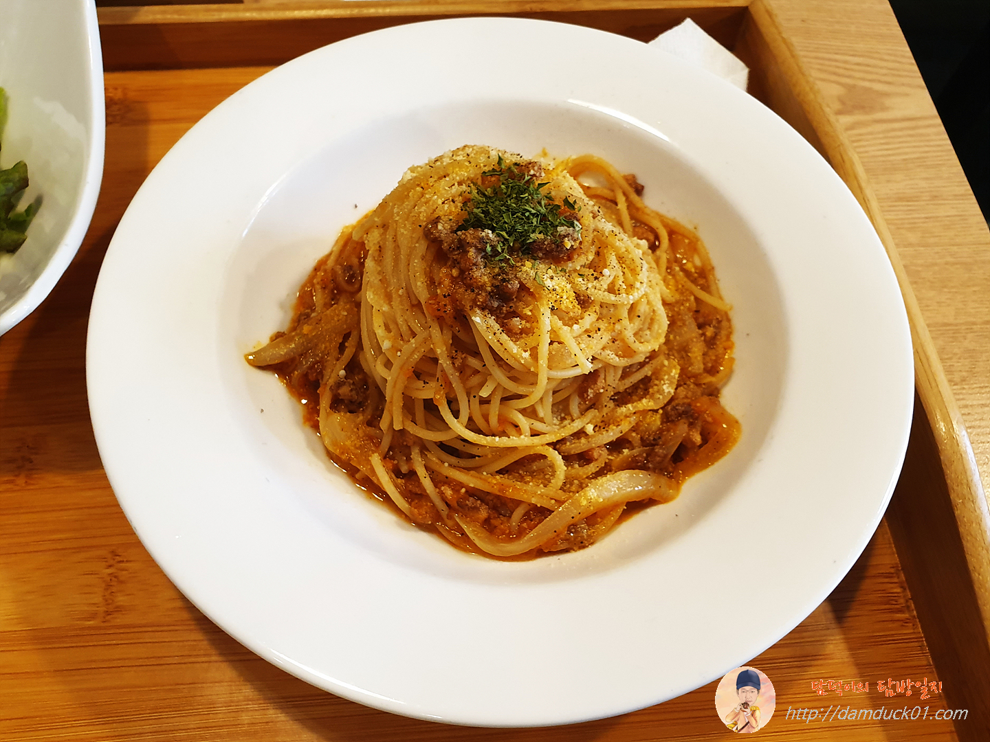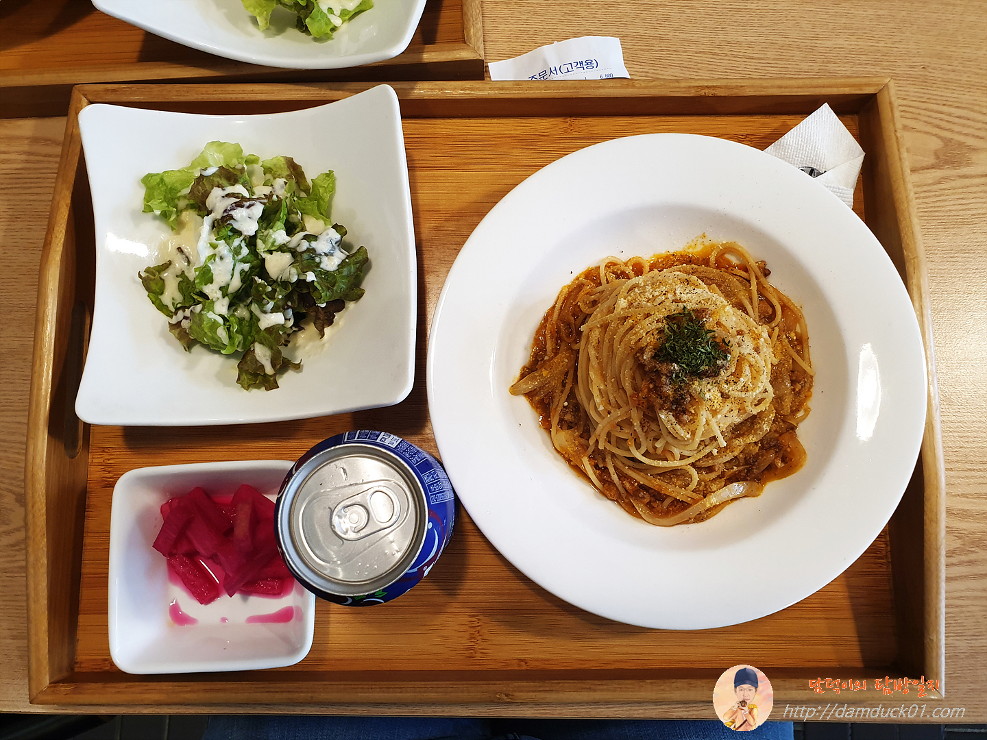 상추 샐러드와 무 피클 그리고 라구 파스타까지 깔끔한 1인 한 상이죠.