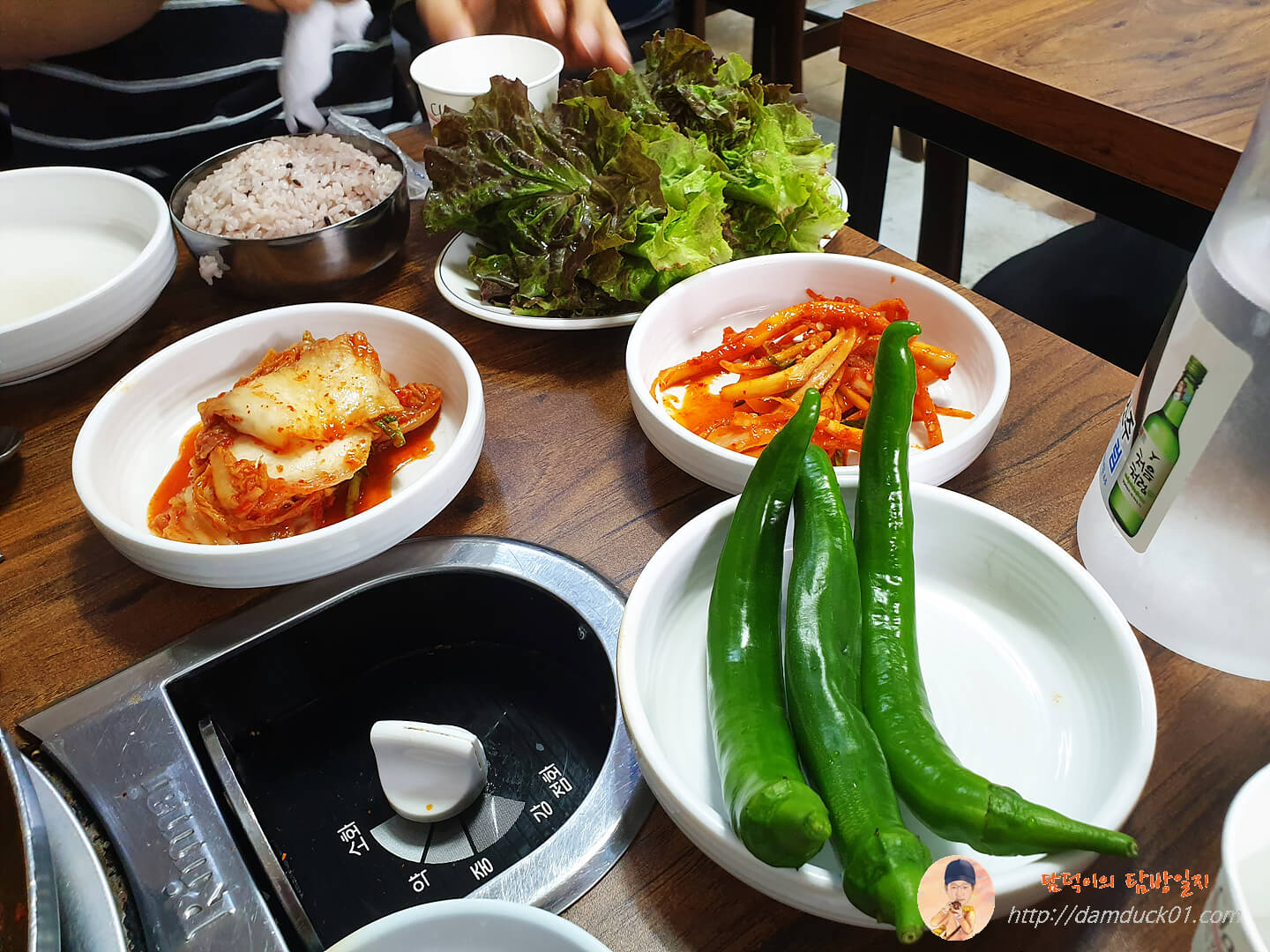 오삼 불고기에 상추는 필수고 상추쌈에 고추와 쌈장 역시 필수죠.
