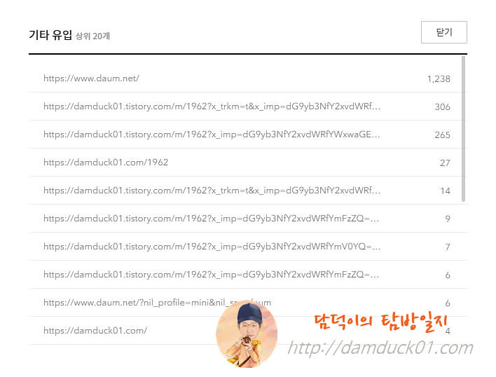 담덕이의 탐방일지 다음 메인 유입 수에 따른 기준.