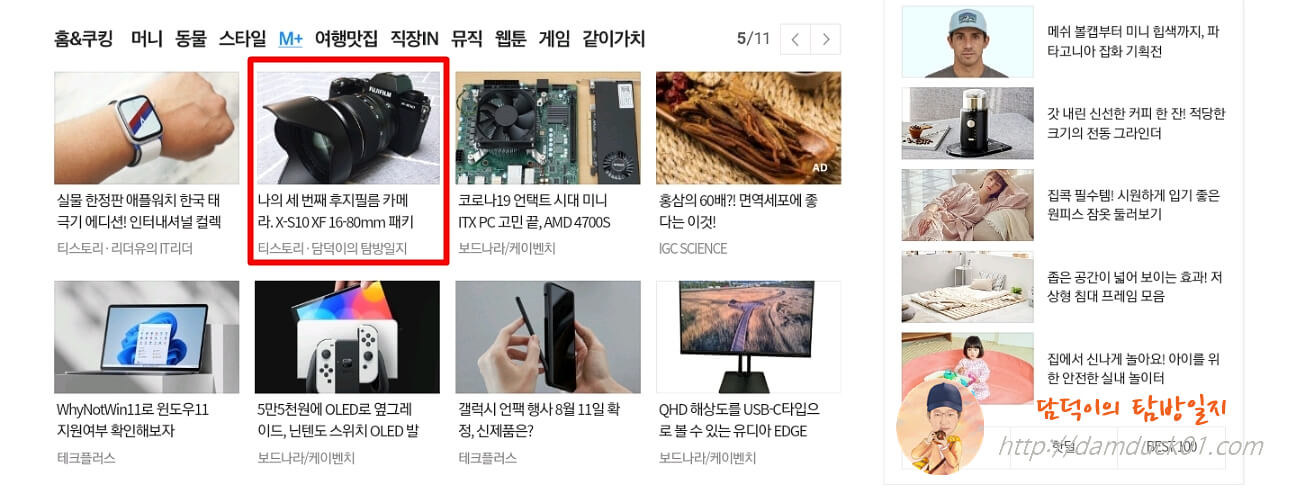 이번에 등록된 포스트는 7월 7일에 발행한 "나의 세 번째 후지필름 카메라. X-S10 XF 16-80mm 패키지." 글이에요.