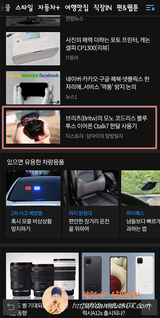 목요일에 발행된 글이 아직 노출이 되고 있는지 궁금해서 살펴보고 있는데 인기 글 순위에 낯 선 글이 보입니다. 그래서 확인을 해 봤더니 2019년 3월 2일에 발행한 "브리츠(Britz)의 모노 코드리스 블루투스 이어폰 Ctalk7 한 달 사용기" 글이 다음 메인에 딱!