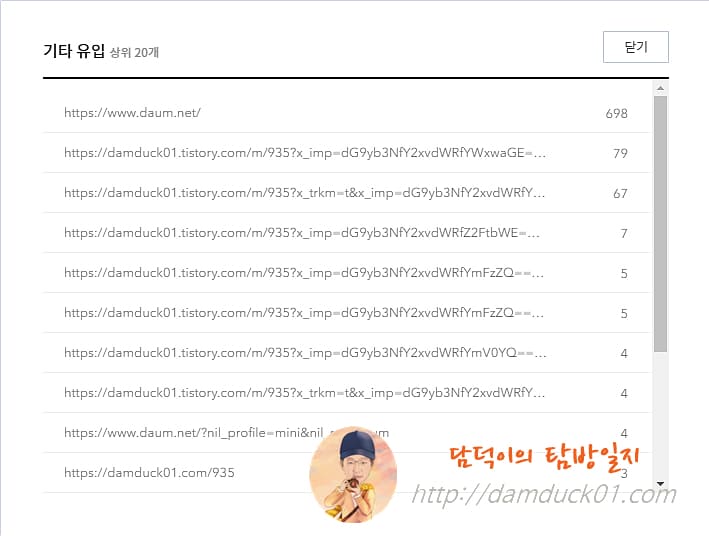 담덕이의 탐방일지 다음 메인 유입 수에 따른 기준.