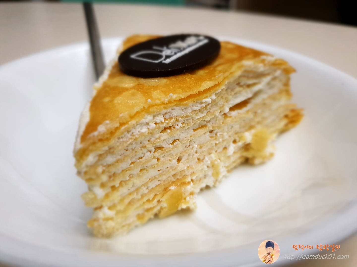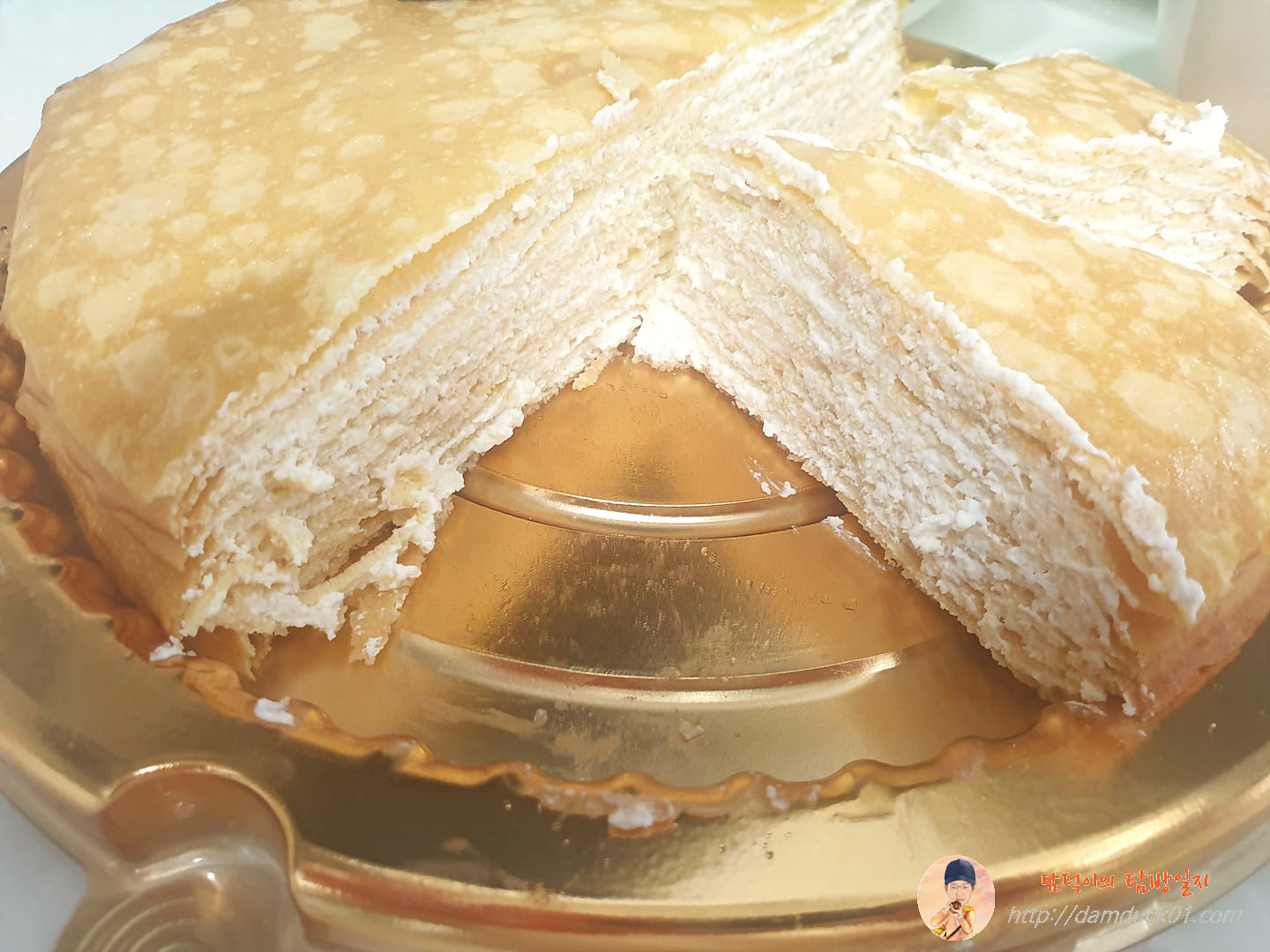 크레이프는 프랑스식 펜케이크의 일종으로 사진에서 처럼 다른 케이크와는 다르게 얇은 팬케이크를 겹겹이 쌓아 만드는 방식인데요.