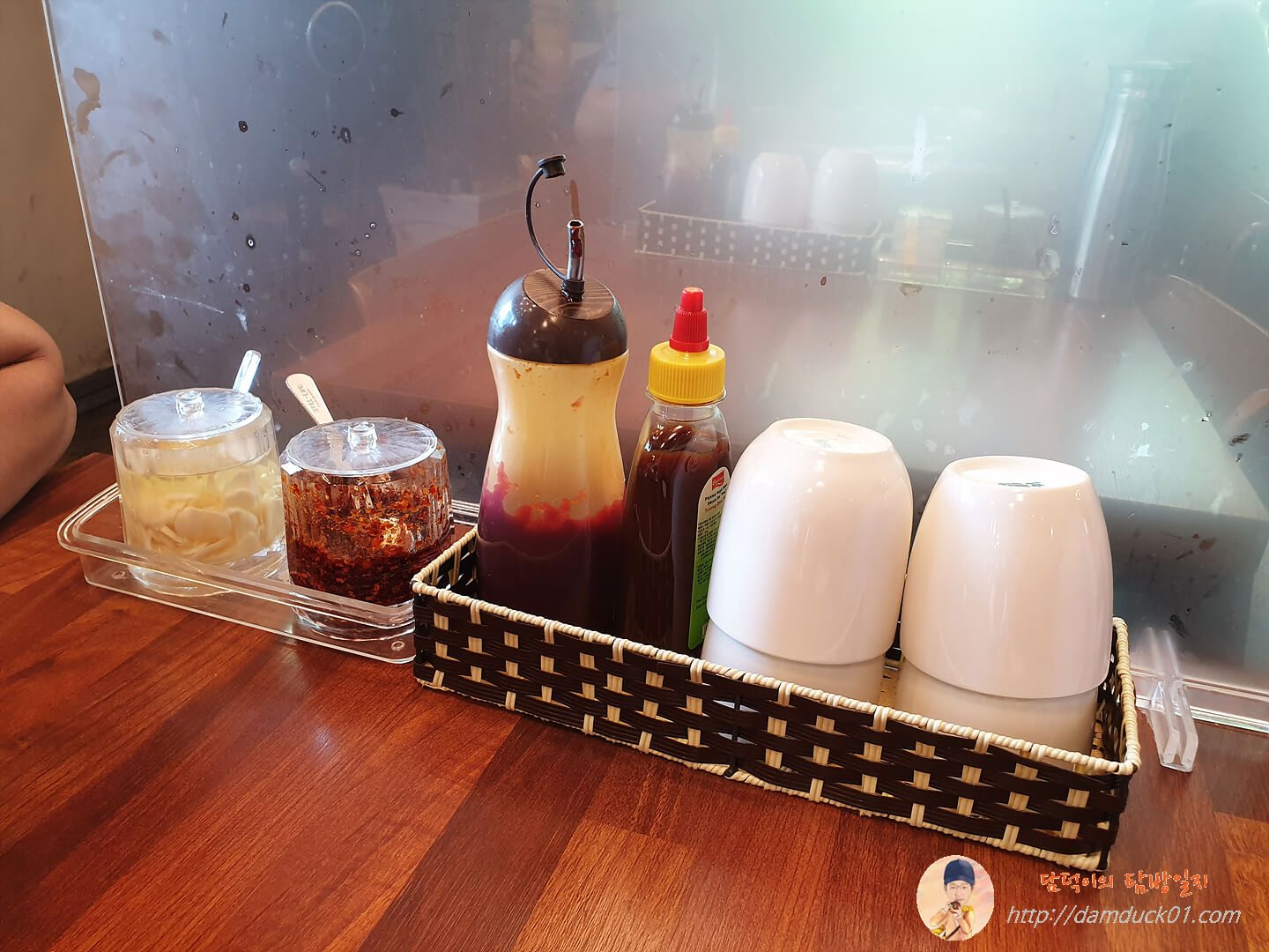 식탁에는 양념과 쌀국수에 첨가할 게 마련되어 있는데요.