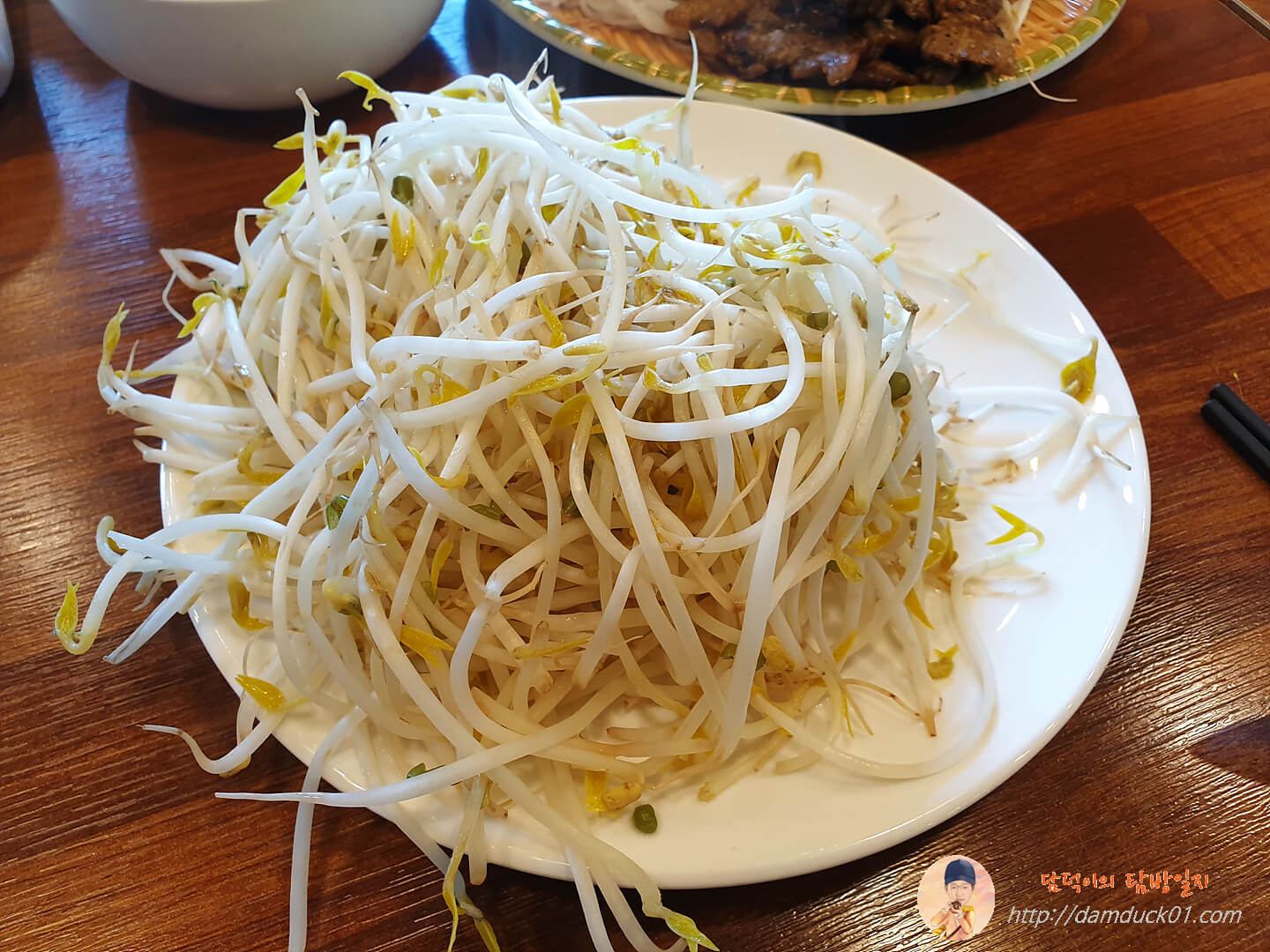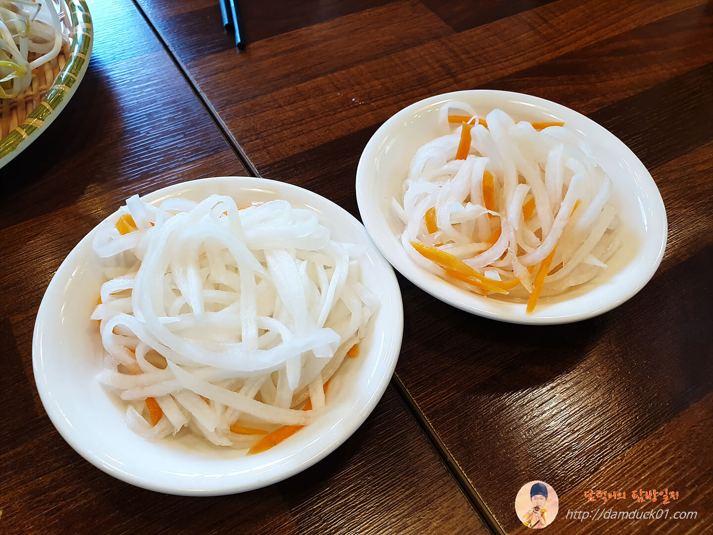 데친 숙주나물이 먼저 나오고 무채 절임(?)이 나왔는데요.